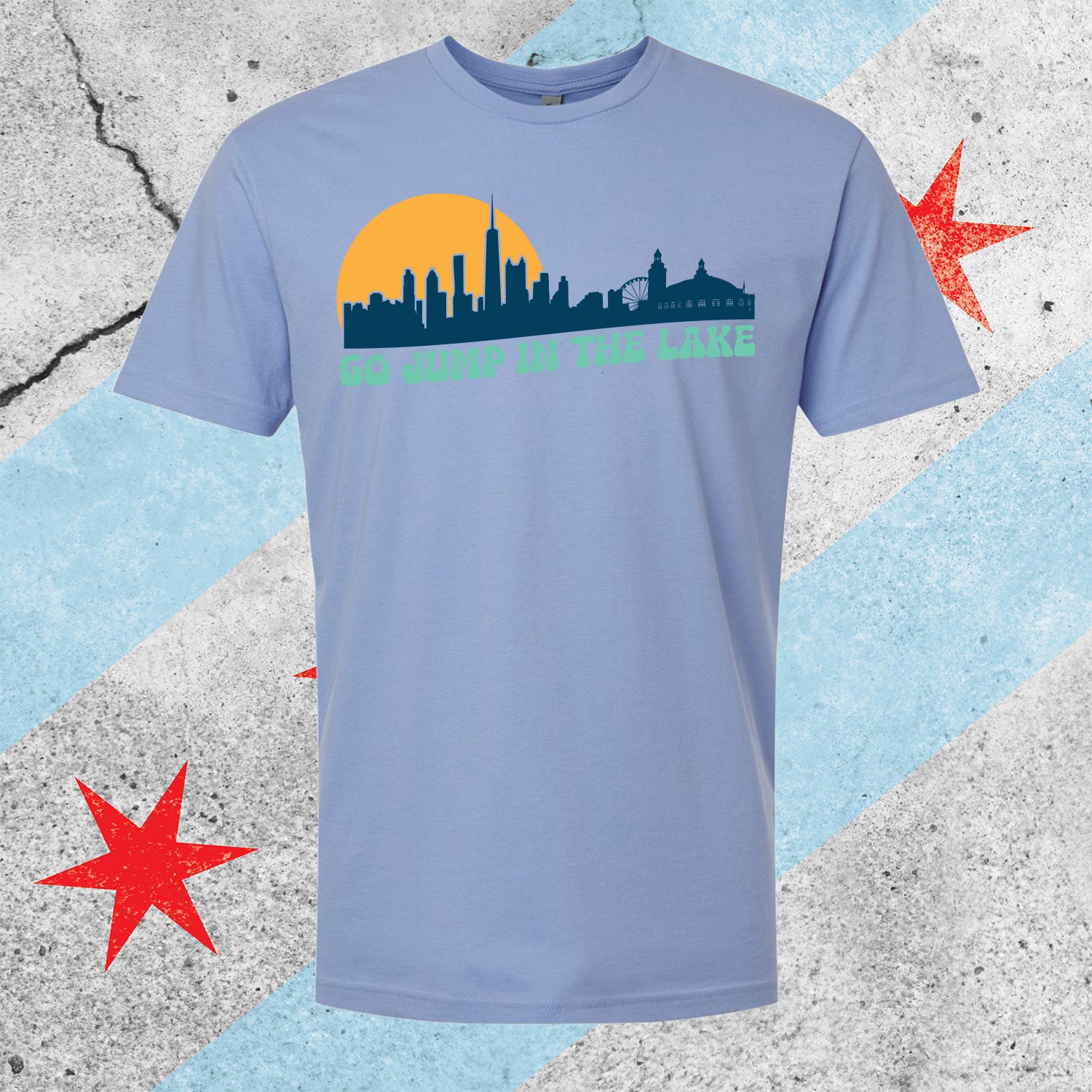 This tee features a bold city skyline set against a warm sun and the words “Go Jump in the Lake”—the most Chicago way to tell someone exactly how you feel. Equal parts sarcastic and scenic, it’s a nod to Lake Michigan, city pride, and our unmatched local attitude.Soft, lightweight, and easy to wear year-round, this shirt is perfect for summer festivals, lakefront days, or making a statement without saying a word.