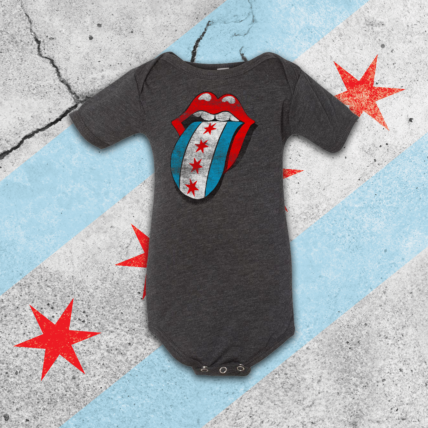 Bring rock ‘n’ roll to baby style with this Rolling Stones Lips onesie featuring the Chicago flag on the iconic tongue! Soft, comfortable, and easy to wear, this playful bodysuit is perfect for little ones who love bold style (and a nod to Chicago pride). Ideal for everyday wear, photoshoots, or gifting to music-loving families.